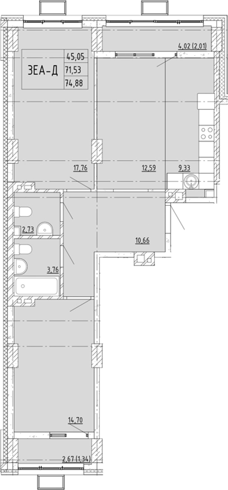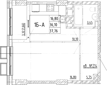 Площадь от 37.76 м2