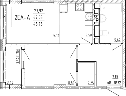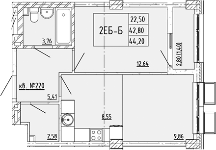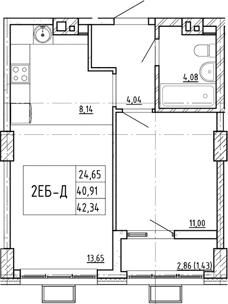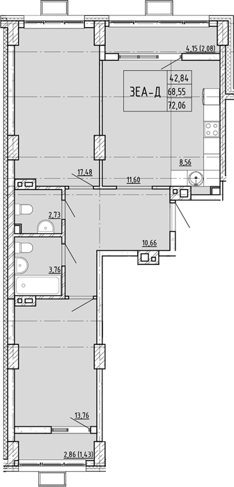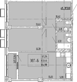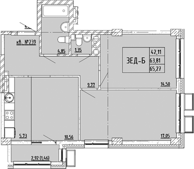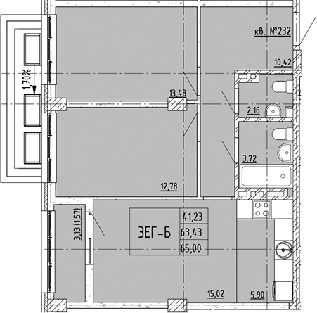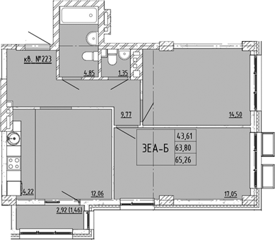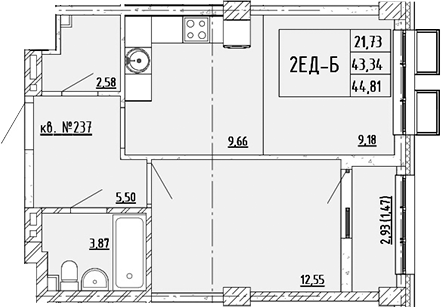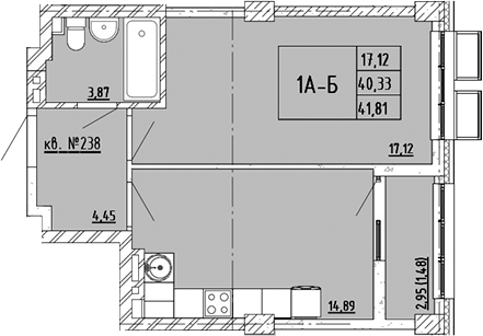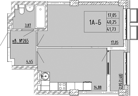Площадь от 42.43 м2