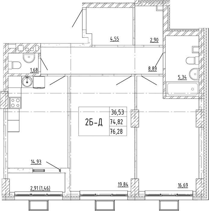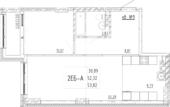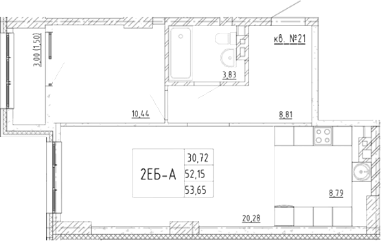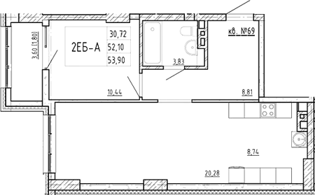 Площадь от 53.28 м2