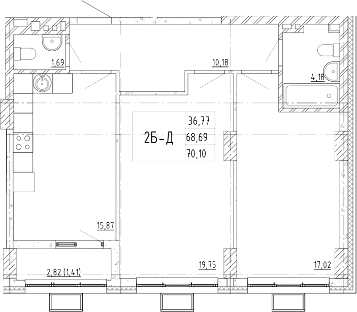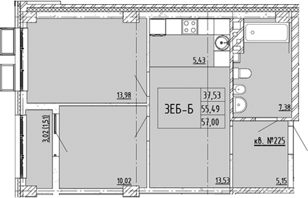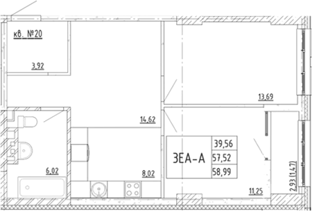 Площадь от 56.84 м2