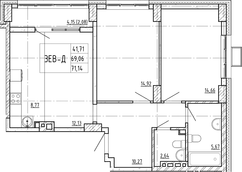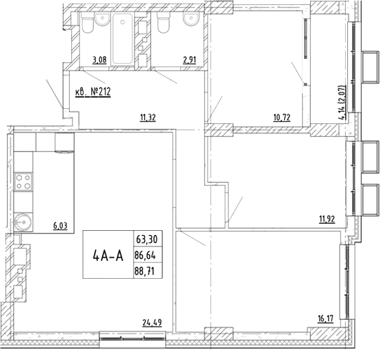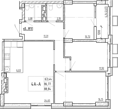 Площадь от 88.71 м2