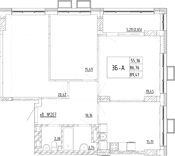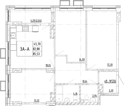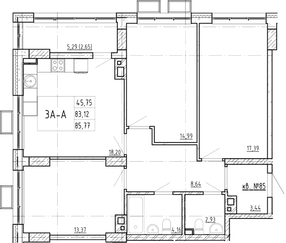 Площадь от 85.53 м2