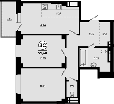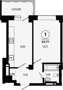 Площадь от 34.28 м2