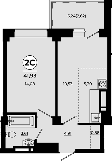 Площадь от 41.24 м2