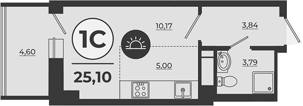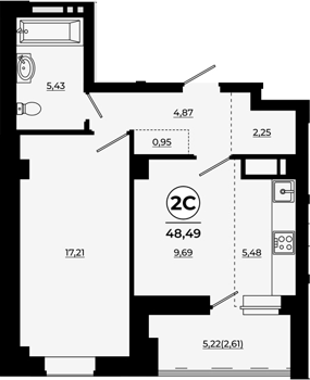Площадь от 24.3 м2