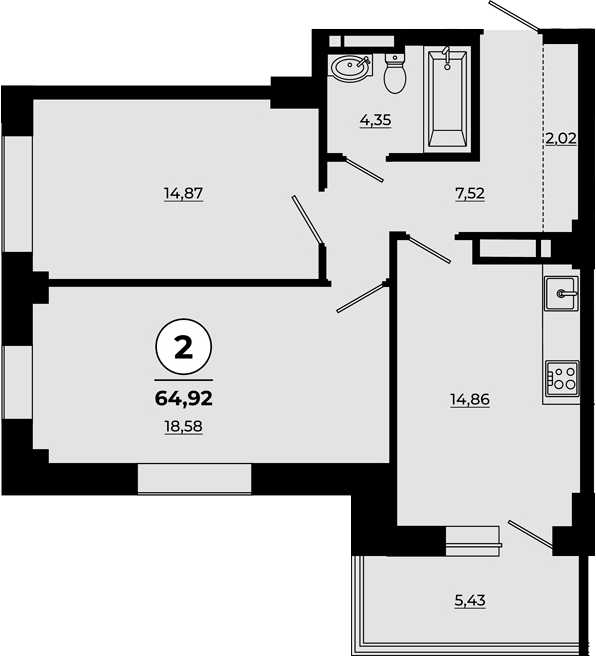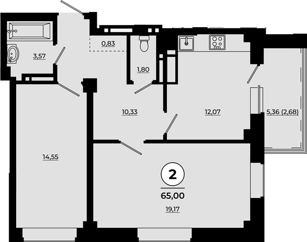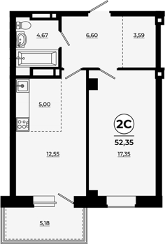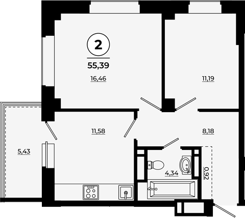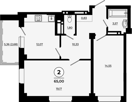 Площадь от 55.04 м2