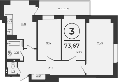 Площадь от 72.74 м2