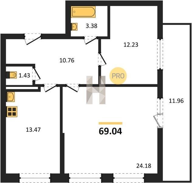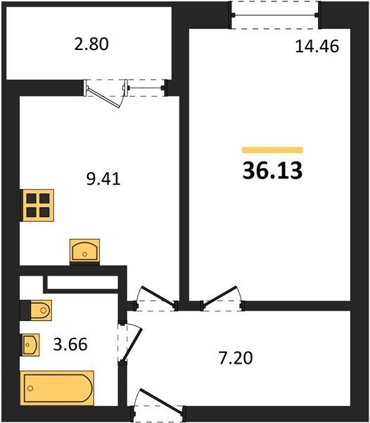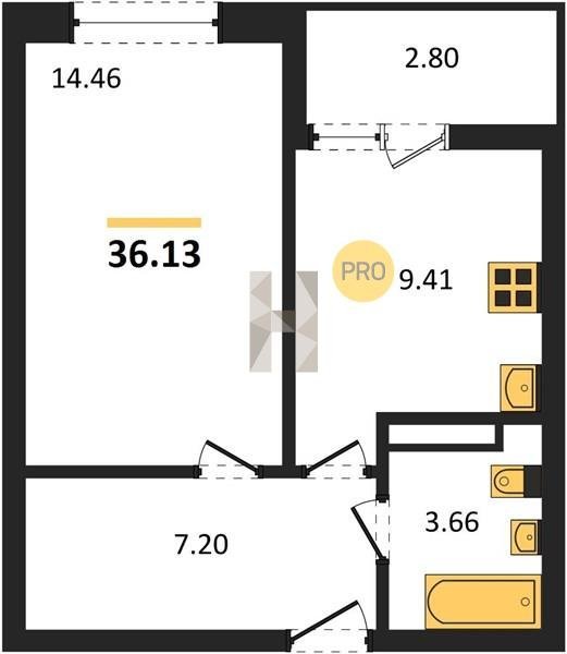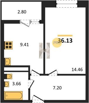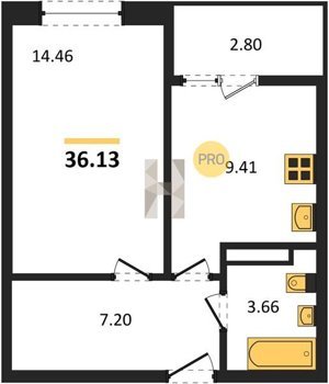 Площадь от 36.13 м2