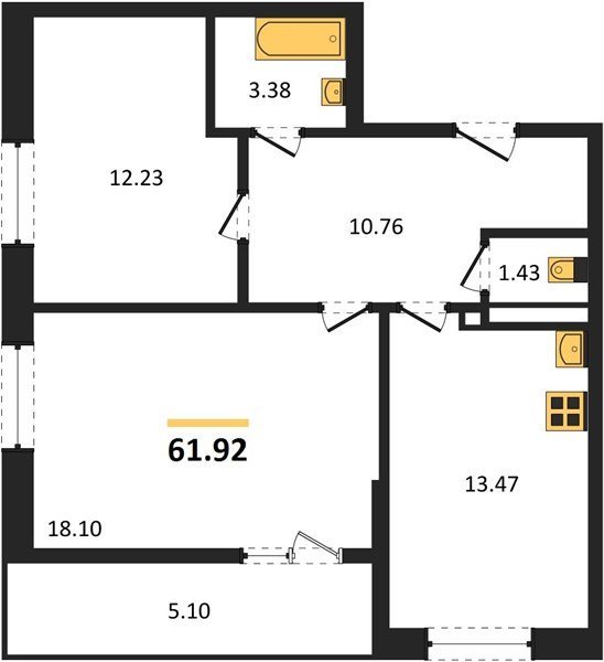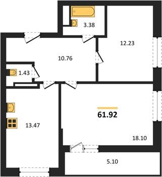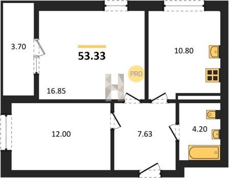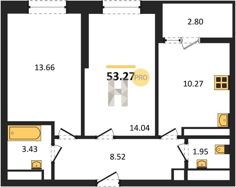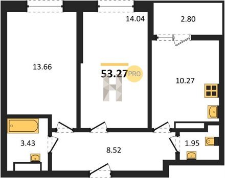 Площадь от 53.27 м2