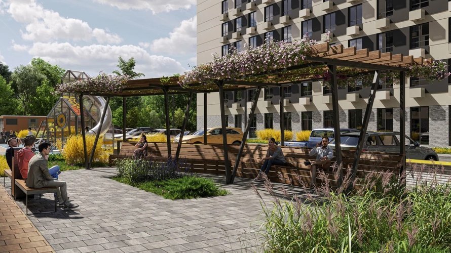 Экосистема Frame находится в центре развитого и спокойного микрорайона. Здесь домашний уют объединен с ежедневными бытовыми потребностями.